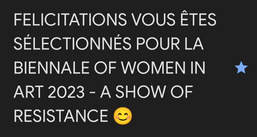 Le deuxième appel à projet reçu favorablement est celui de la Biennale of Women in Art, qui aura lieu en octobre 2023 à Bruxelles.